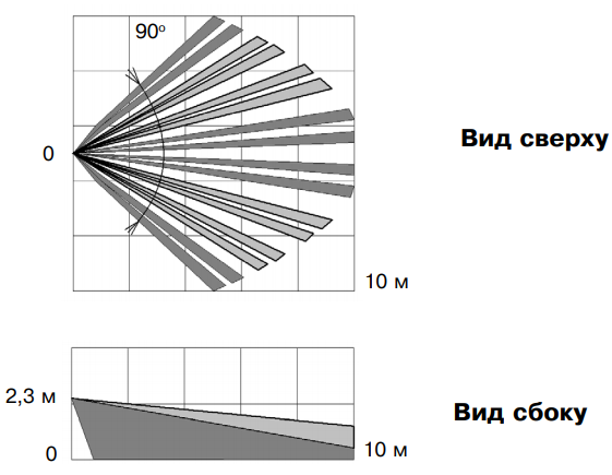 | Угол зоны (Охранные датчики) | 90° объемная |