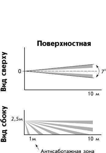 | Угол зоны (Охранные датчики) | 8° поверхностная |